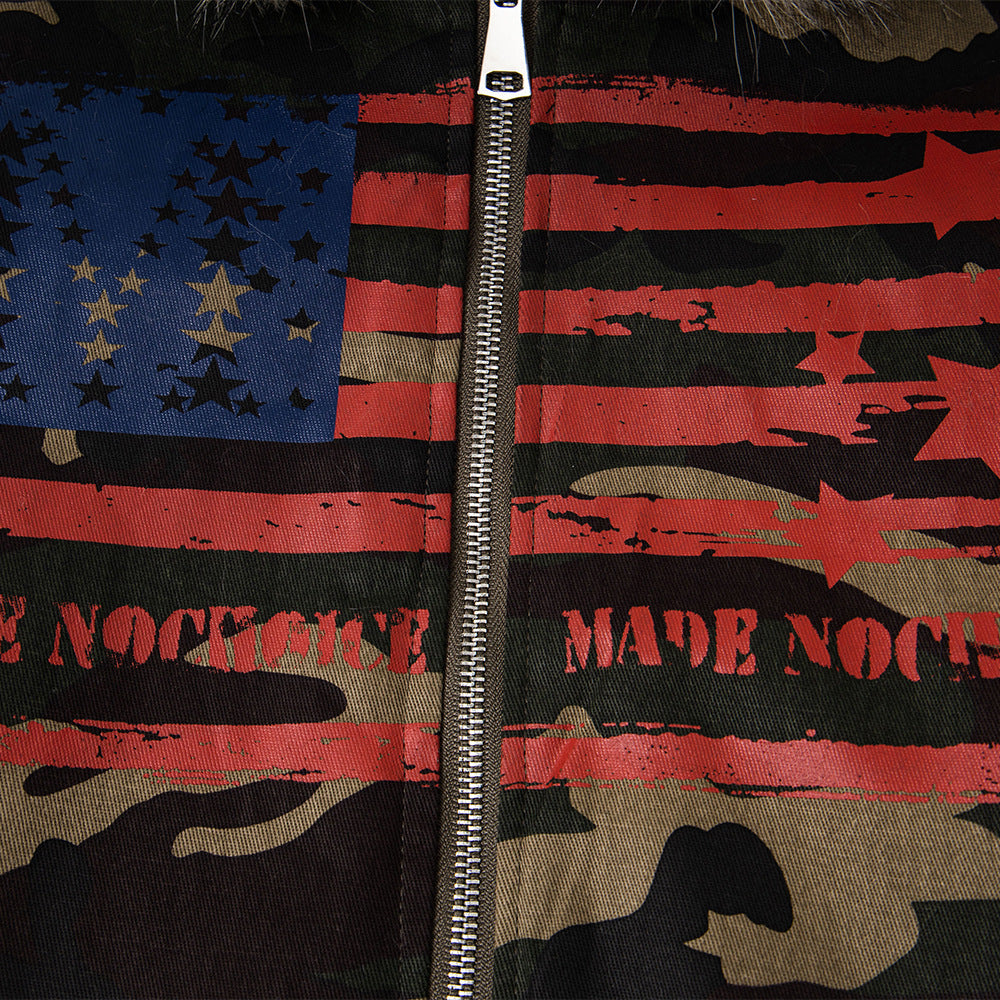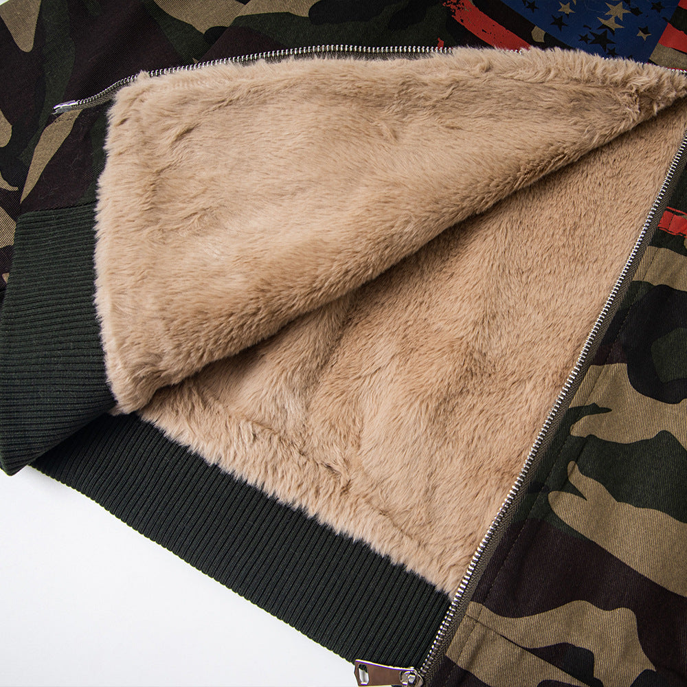 Camouflage Fur Collar Hooded Sweatshirt Cotton Jacket
