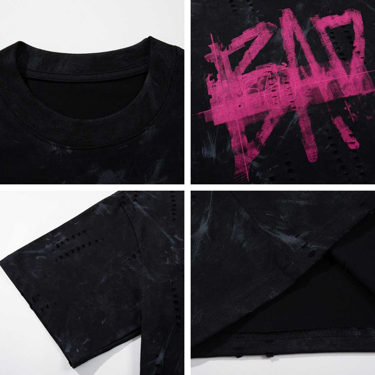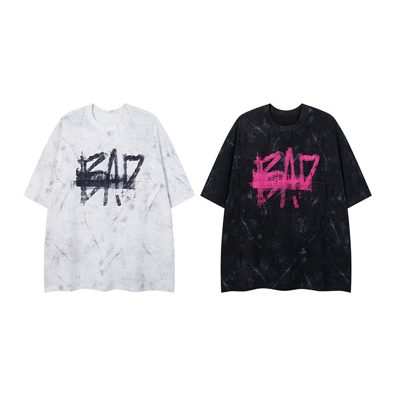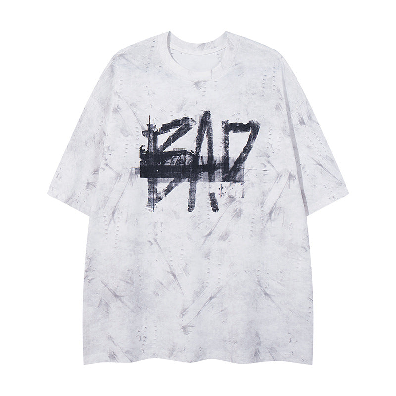 Harajuku Style Distressed Letter Print Casual Tee