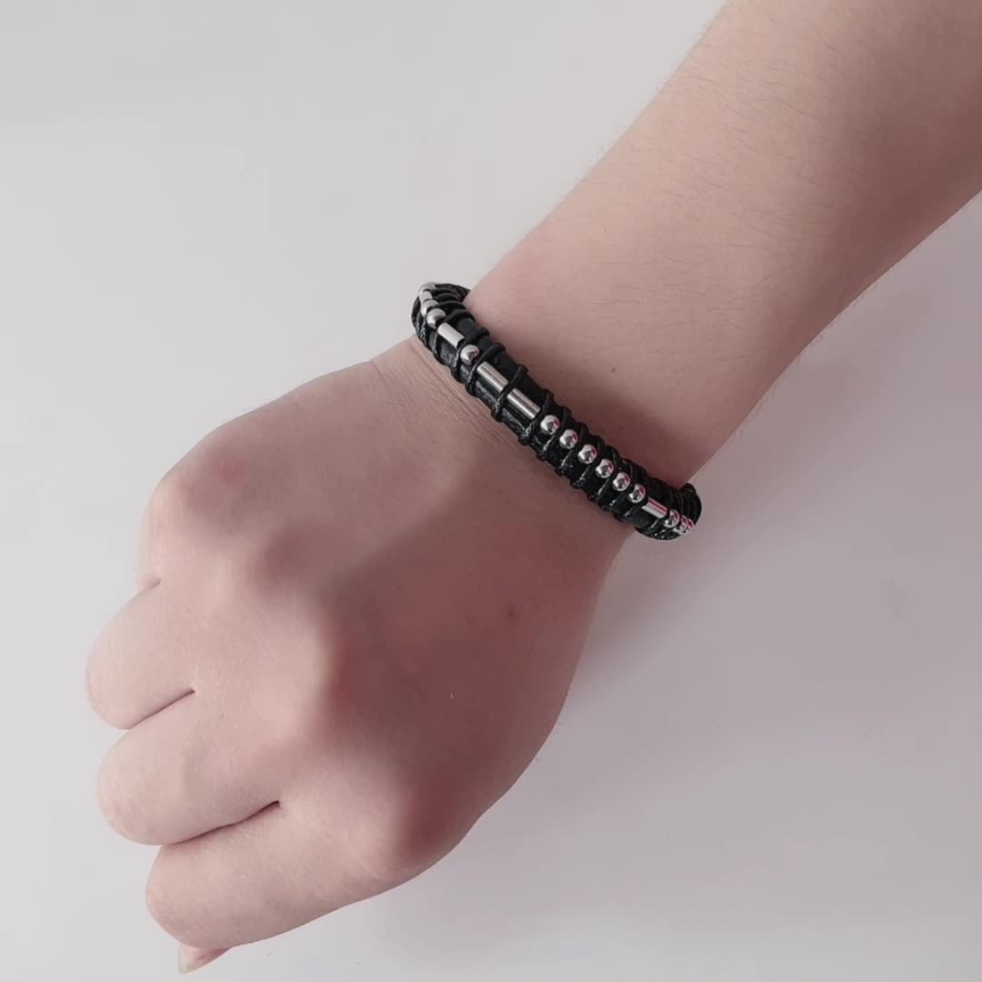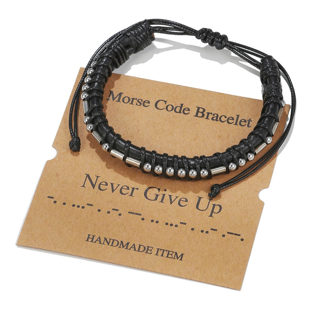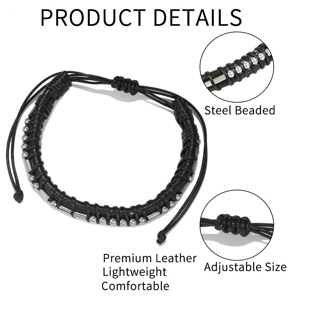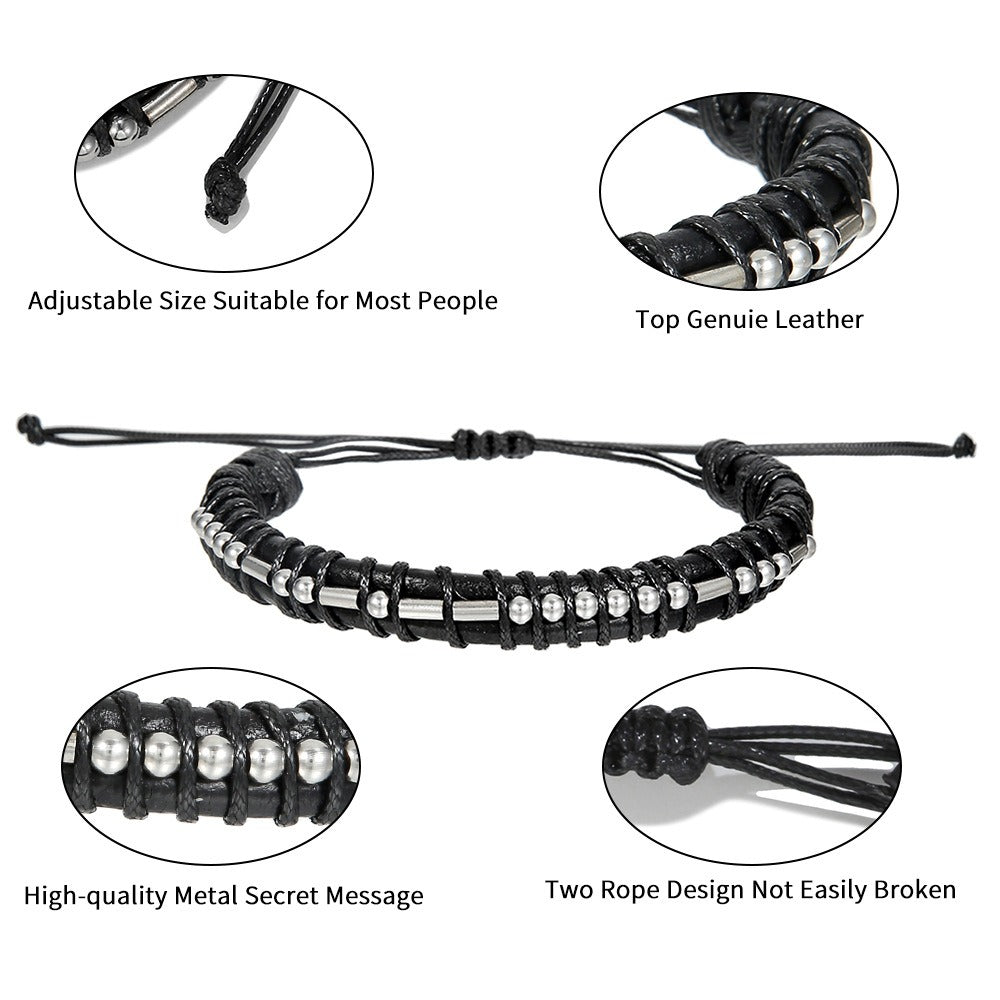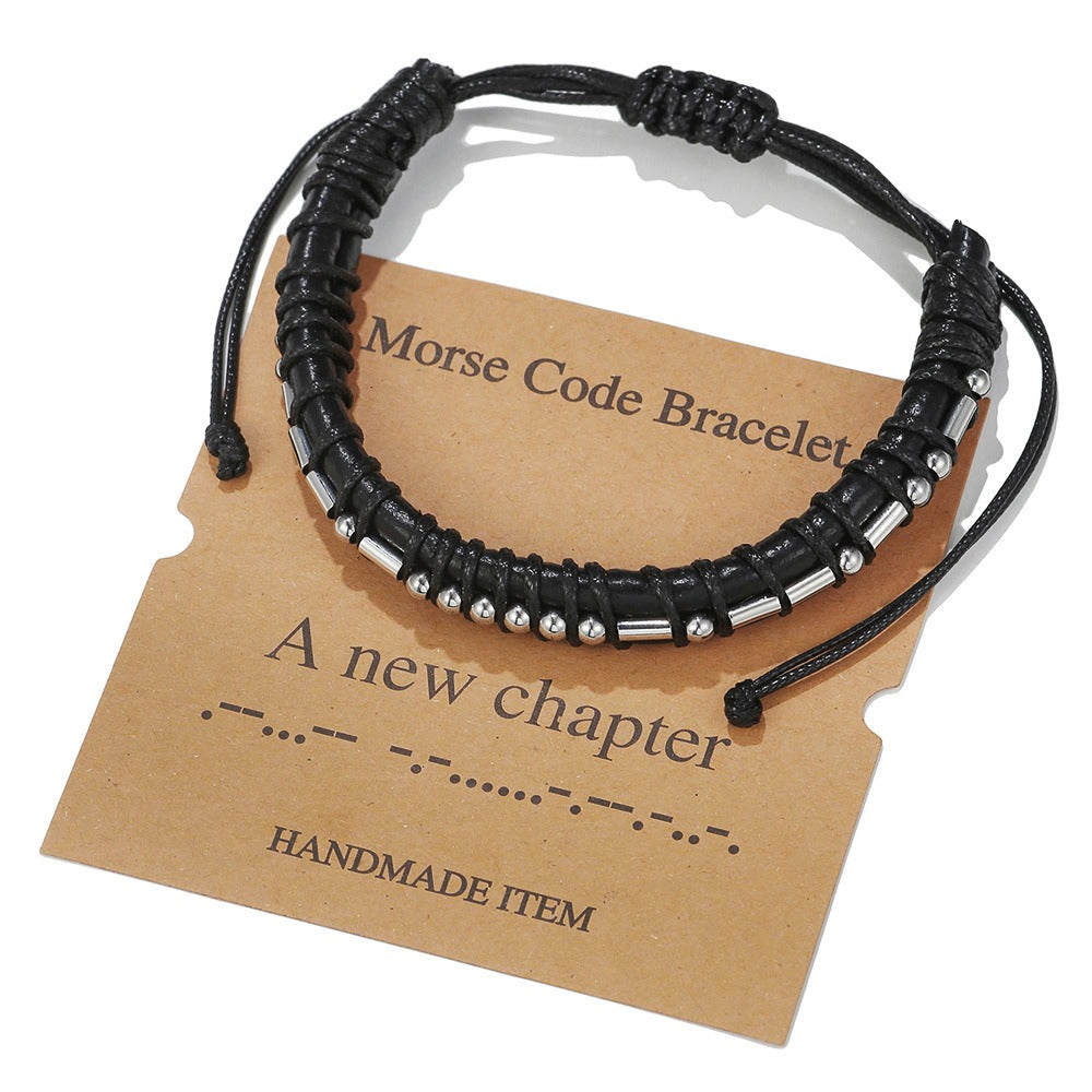 Harajuku Style Leather & Stainless Steel Alphanumeric Couple Bracelet