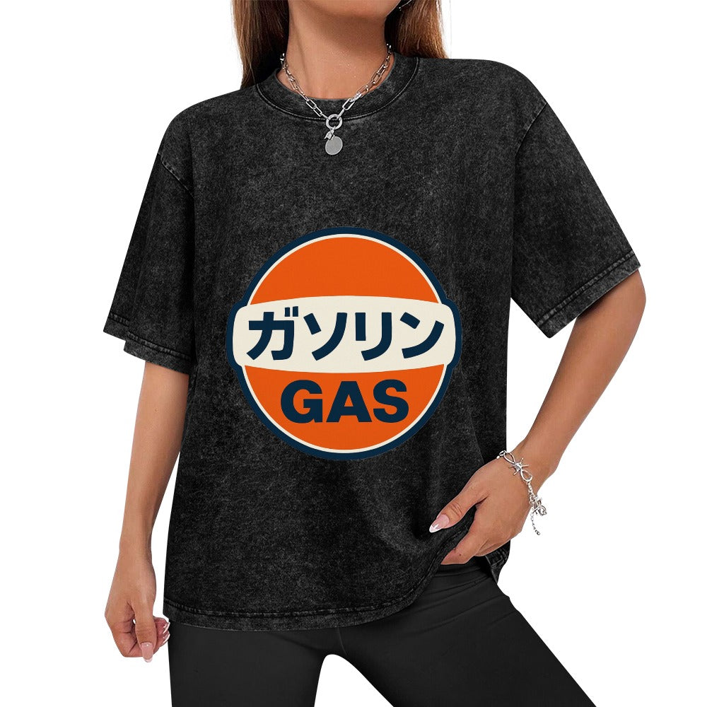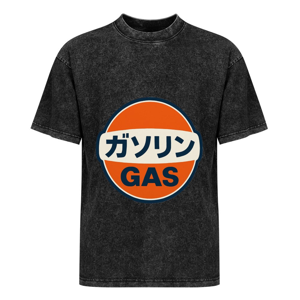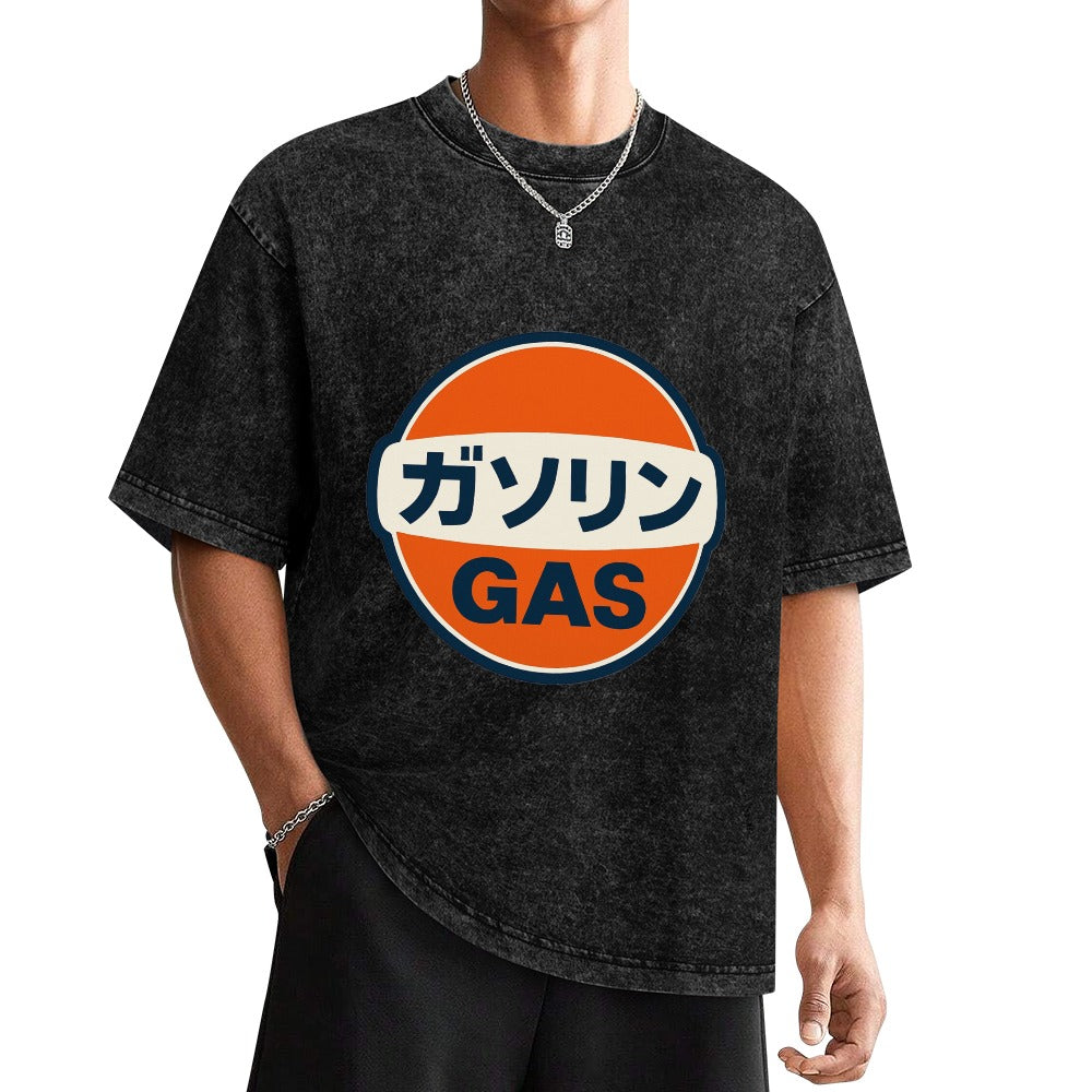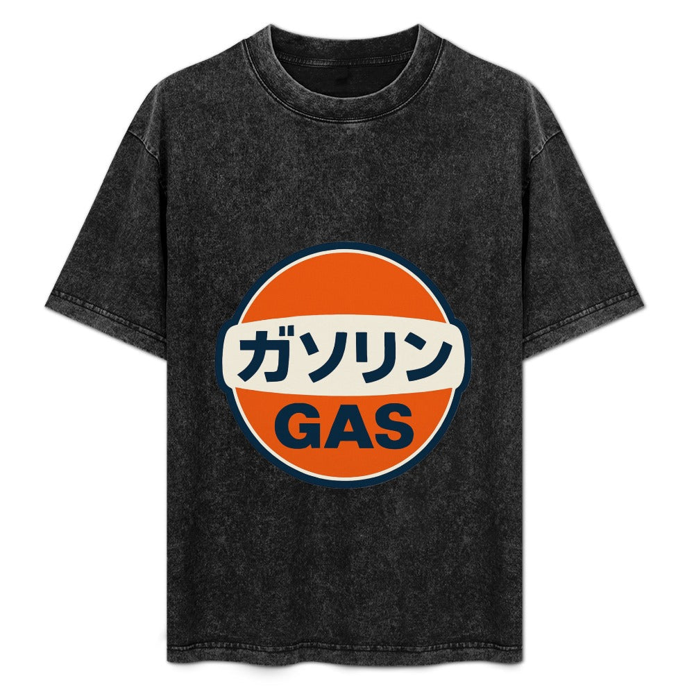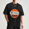 Japanese Gas Station Logo Vintage Wash Off Shoulder Tee
