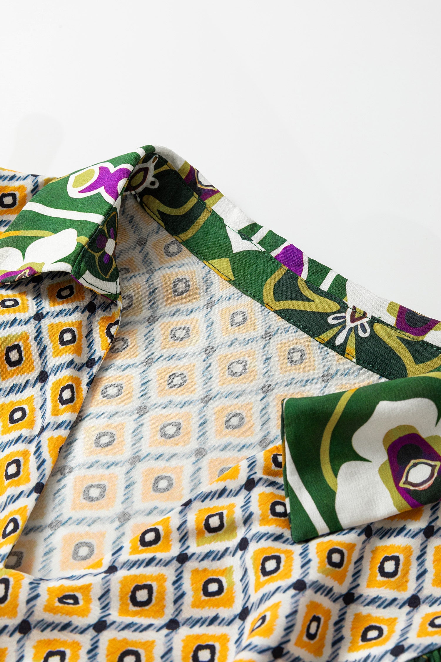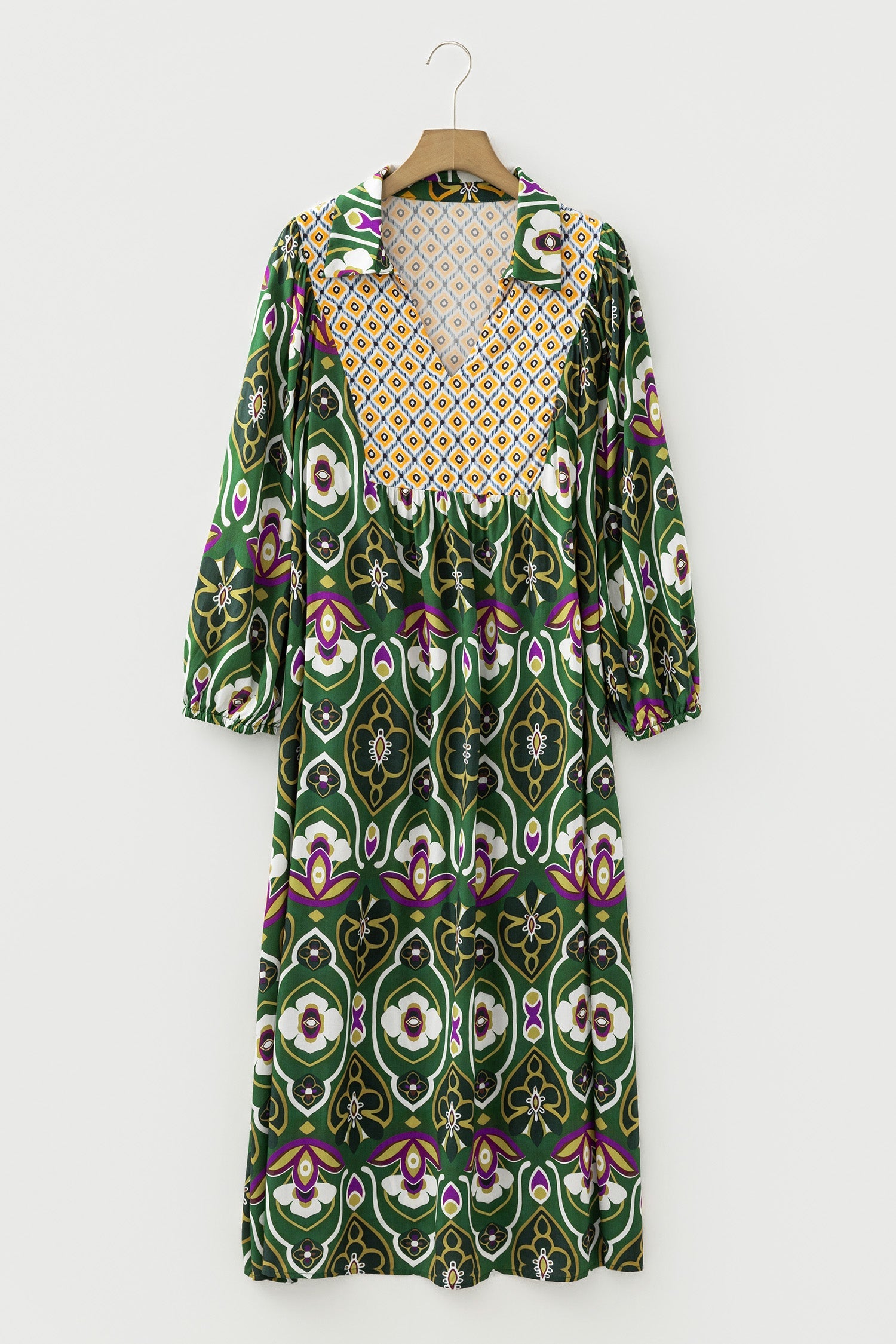 Plus Size Floral Patchwork Collared V-Neck Maxi Dress