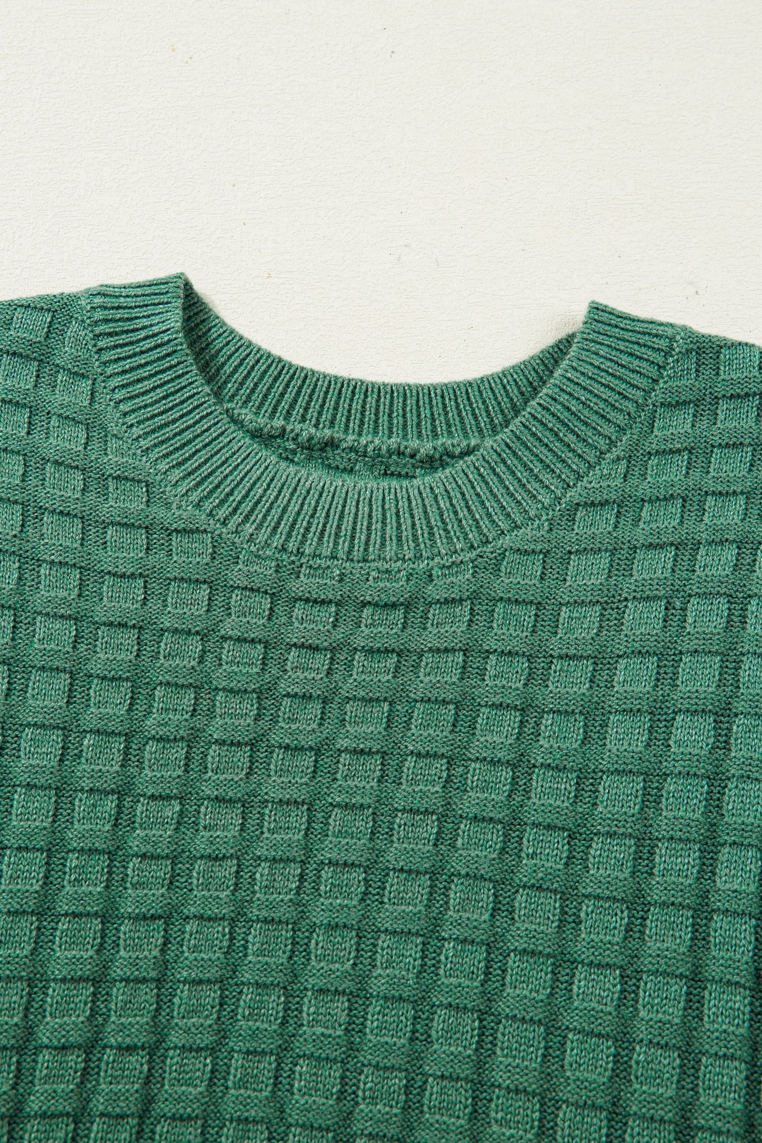 Solid Textured Round Neck Short Sleeve Sweater