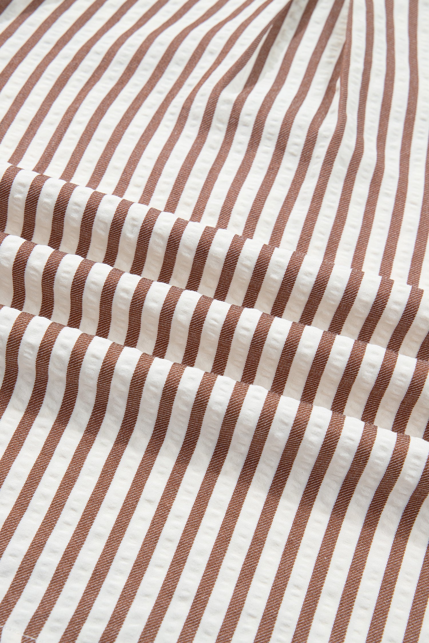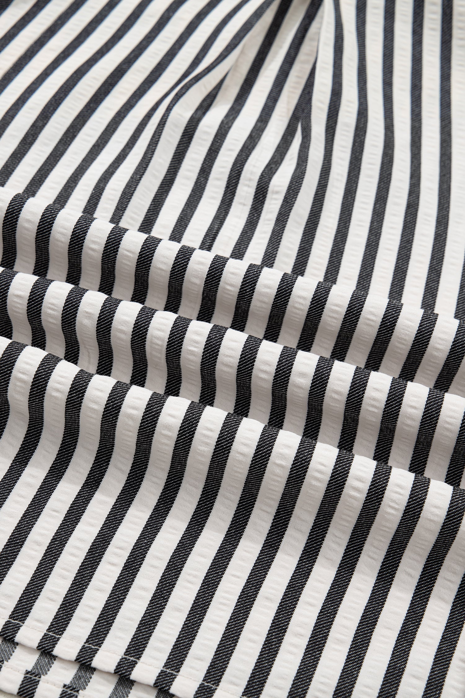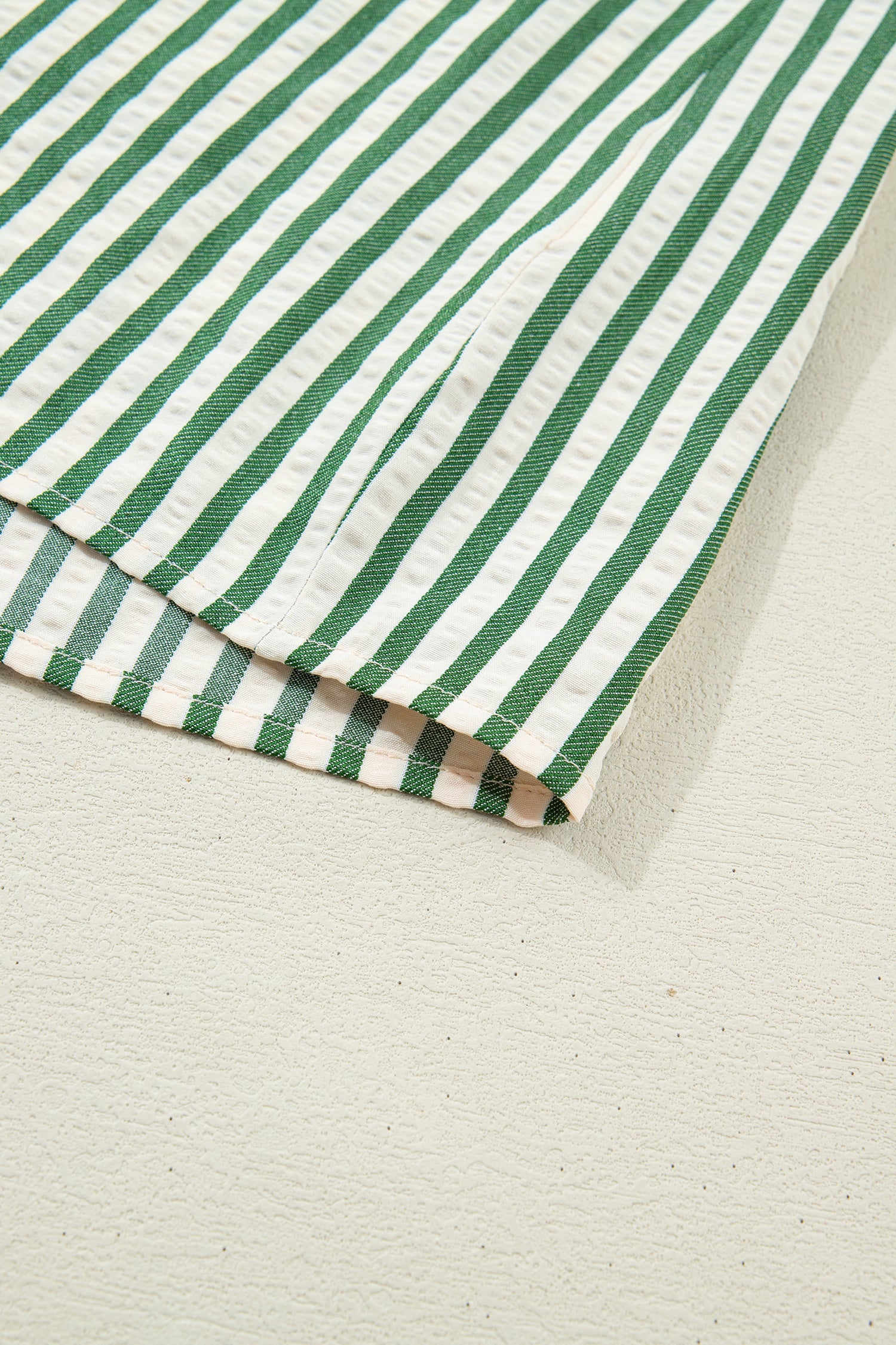 Stripe Collared V-Neck Bubble Sleeve Blouse