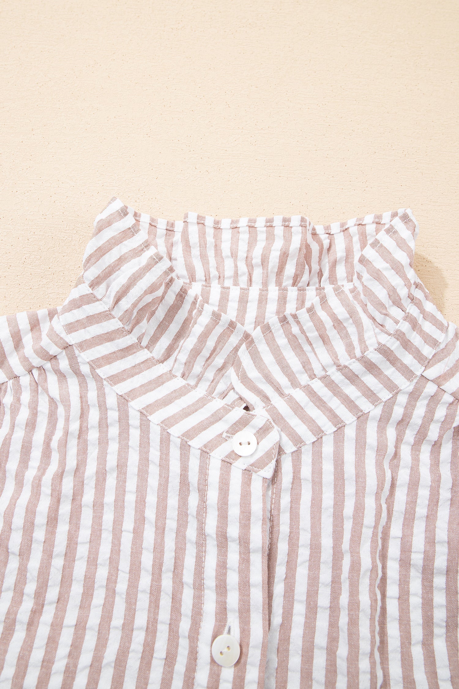 Stripe Frilled Collar 3/4 Sleeve Maxi Dress
